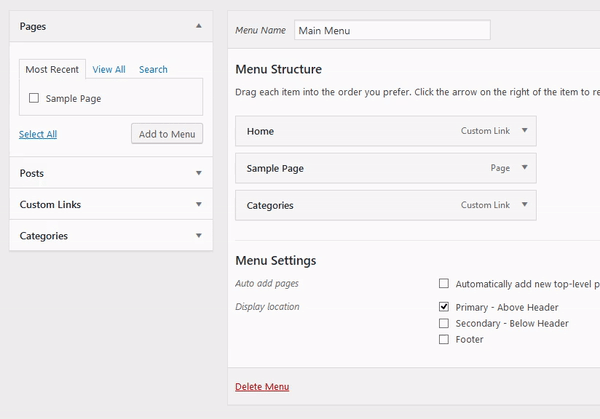 Important! After you have created your menu, you should assign it to the "Primary Menu" position: